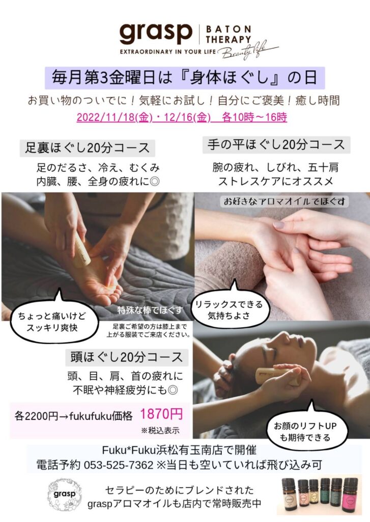 こちらは、20分メニューでイベント出店もしていて12月は16日の金曜日にFuku*Fuku浜松有玉南店さんでやりますのでお時間ある方は是非ご来店くださいね。
