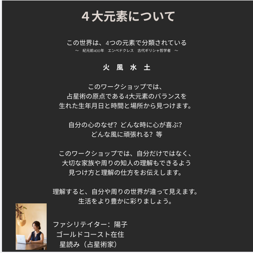 今回は知り合いの方が主催のワークショップのご案内です。オーストラリアからワークショップの為に帰国するそうですが、どこもすぐ予約が埋まってしまうらしいです。ご興味ある方日にちが合う方いらっしゃったらお早めにkokowaの公式LINEにご連絡ください。予約埋まり次第募集終了となります。