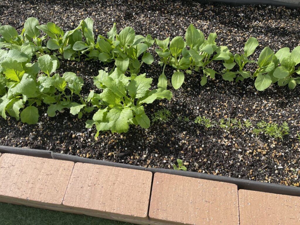 最近、私は裏庭に小さな花壇を作りました。これは30分で組み立て出来るレンガです。とても楽に組み立てれてこれはオススメです。毎年少しずつプランターで野菜を作ったりはしてたのですが、プランターだとなかなか土が少なくてうまく出来なくて、もう少ししっかりやりたいなと思い今回は土もしっかり調べて『カネアさんの金の土』を買ってみました。気になる方は検索してみてくださいね。種も在来種、固定種を買ってみて準備は万端です。いまは、種まきをして少しずつ芽が出てきて、間引きしてる苗を味噌汁に入れて食べてます。毎日の成長がとても楽しいです。いつも美味しい大根をくださるお客様w様みたいな美味しい野菜を作れるようになりたいです。w様いつも有り難うございます。